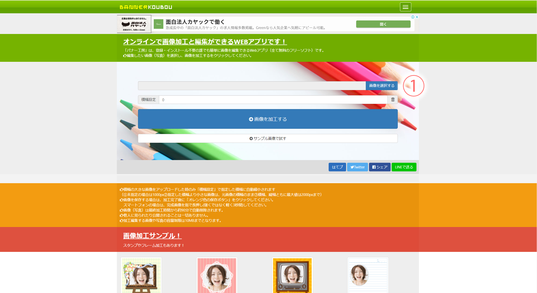 画像加工編集サイト - 無料で画像を加工、編集するならバナー工房