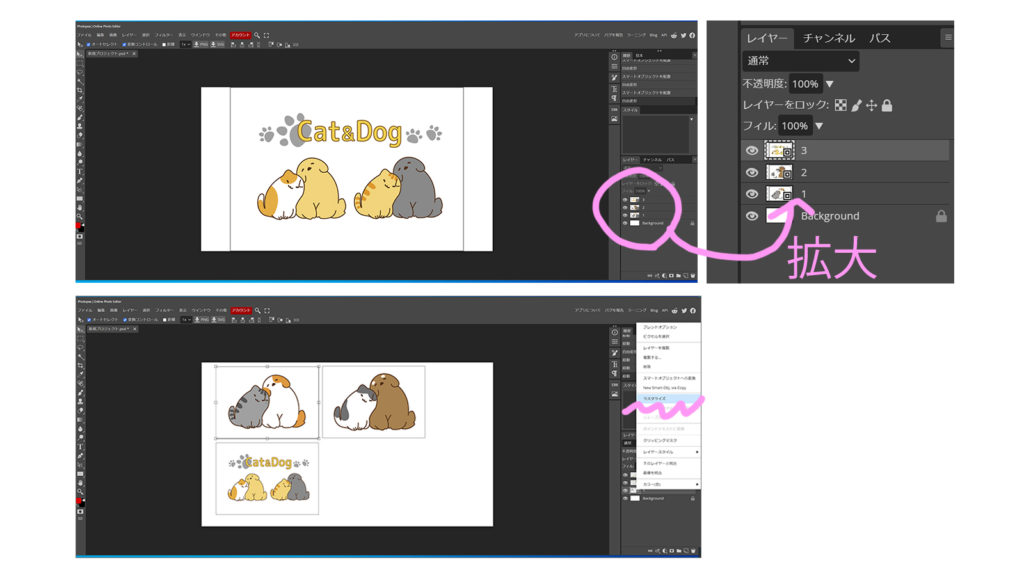 今回は、同じ作業を、PhotopeaとPhotoshopで行い、画面表示などの類似性を、検証します。