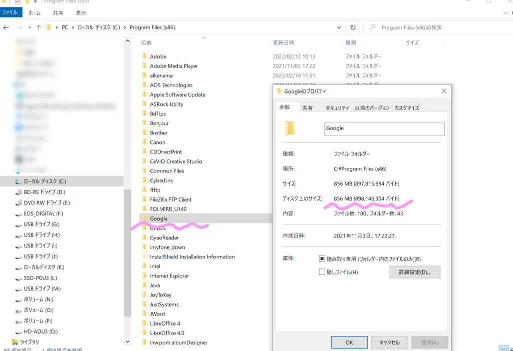 インストールフォルダーもGoogleとなっており、非常に軽い物です。多分、ショートカットは、直接ブラウザにアクセスさせる事を主な目的としている様です。因みに、フォトショップは、約3ギガ有ります。