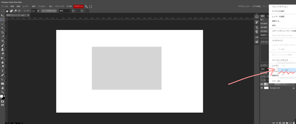 同じ感じで、今度はペーストを選択する。