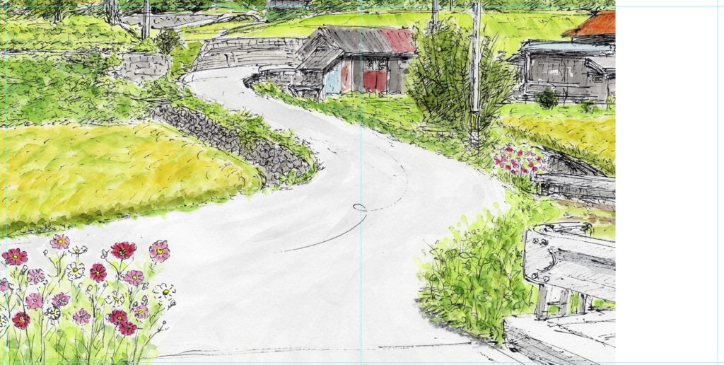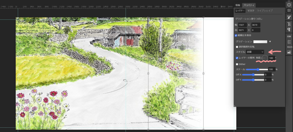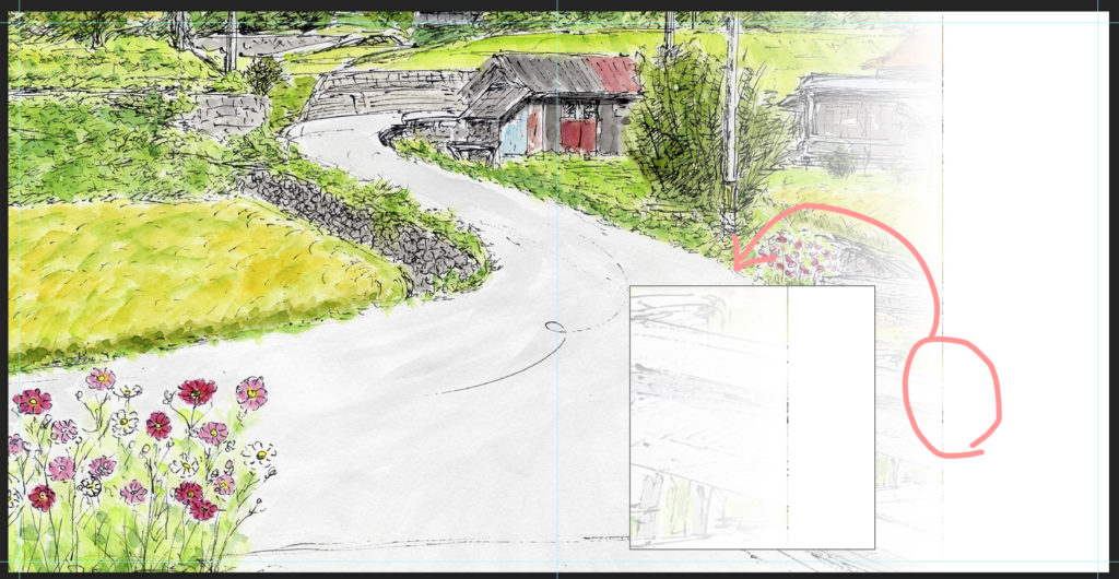 グラデーションのレイヤーは、ギリギリの場所に置く方が綺麗ですが、ガイドの線と重なって、隙間が開いている事が有ります。一度は、ガイドを外して、少し拡大して確認する方が良い気がします。アルバムに製本してから気が付くと、全部やり直しに…(涙)。