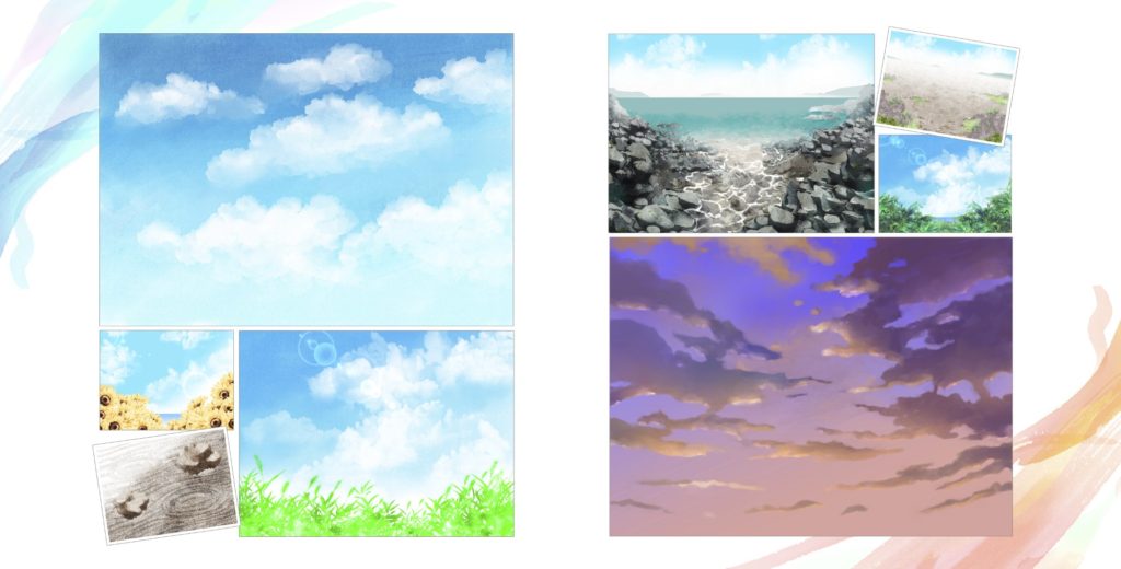 角に置いている模様は、ラインで検索、ろくロクさん(緑で検索が出やすいかもです)、イラストは風景で検索、沢音千尋さんの物を、使わせて頂いております。ありがとうございます。