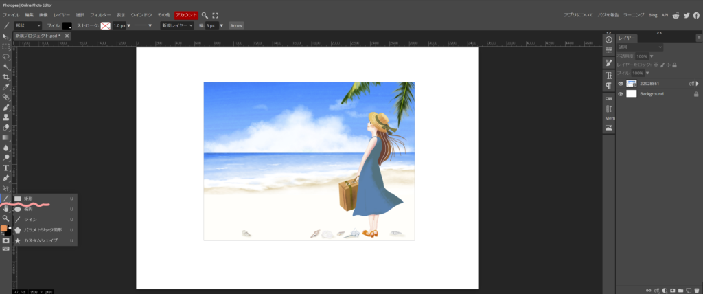 今回は、矩形ツール(シェイプと言ったりする)を使って、画像を切り抜きますが、色々と応用が出来ますので、良ければ、憶えてみて下さい。