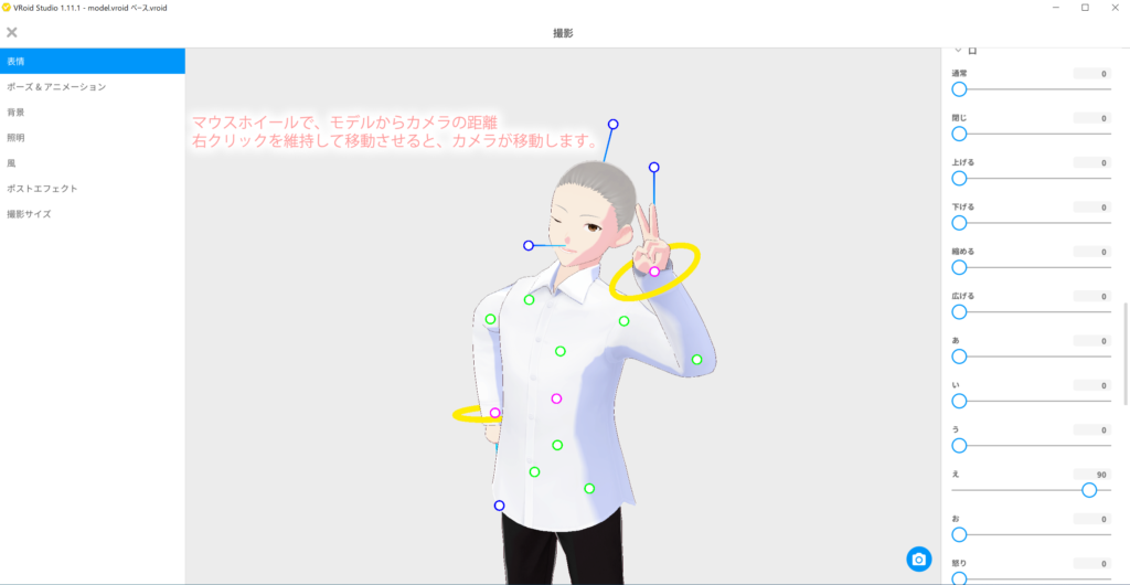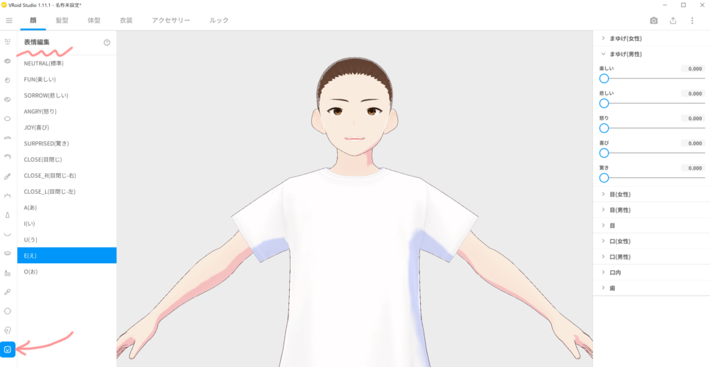 続いて、左の表現編集(えの口の形)を選択して、笑顔にしてみました。
