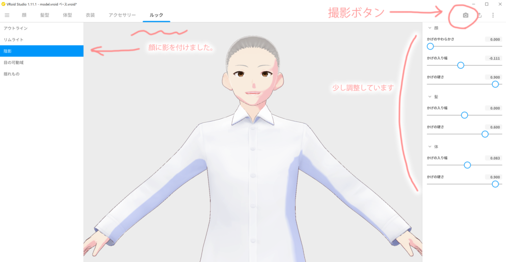 お顔周りが出来ましたら、上段のカメラマークを選択して、動きを付けて行きます。
