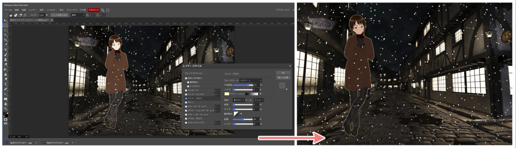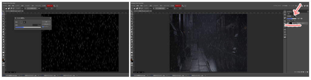 今回は、画像に雨(雪)を追加する、をやって見ます。
