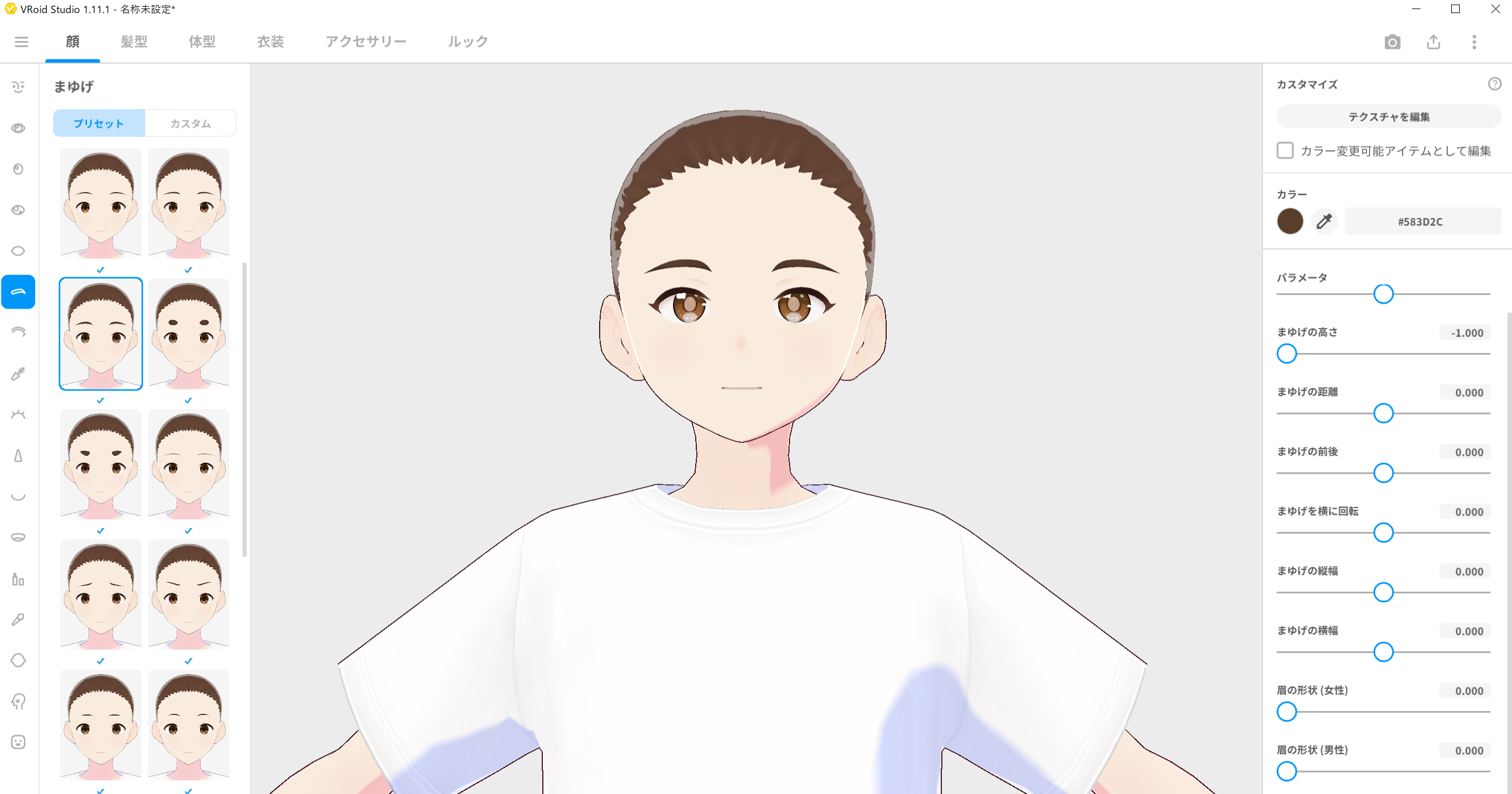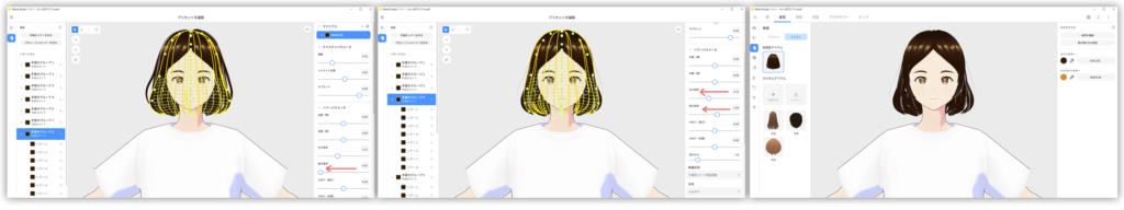 ヘアーパラメーターの中で、厚み倍率と太さ倍率のスライダーを調整して、落ち着いた感じにしてみました。
