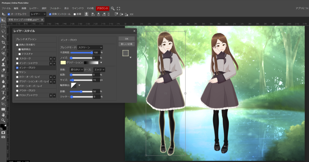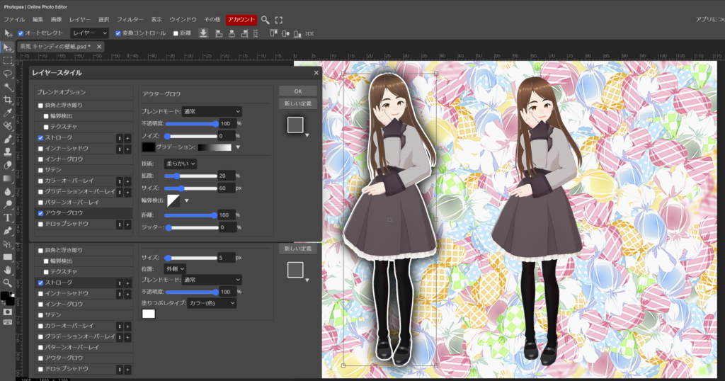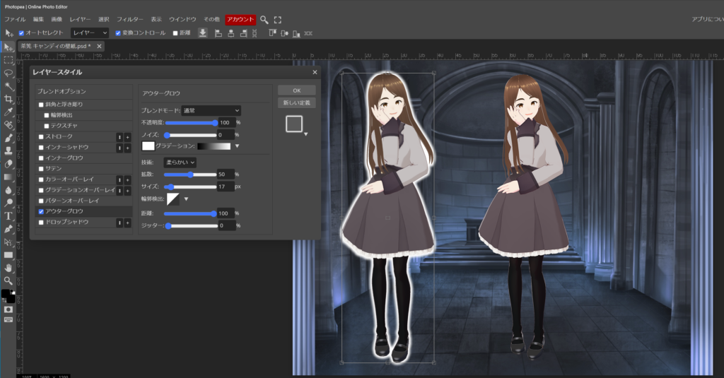 お時間に、ゆとりが有る時に、他の効果も使ってみて下さい。VRoidstudio は素晴らしいソフトですが、画像に効果を着ける事が出来ません。出来上がったアバターを更に良くしていく工夫を Photopea で出来たらなぁと思っています。