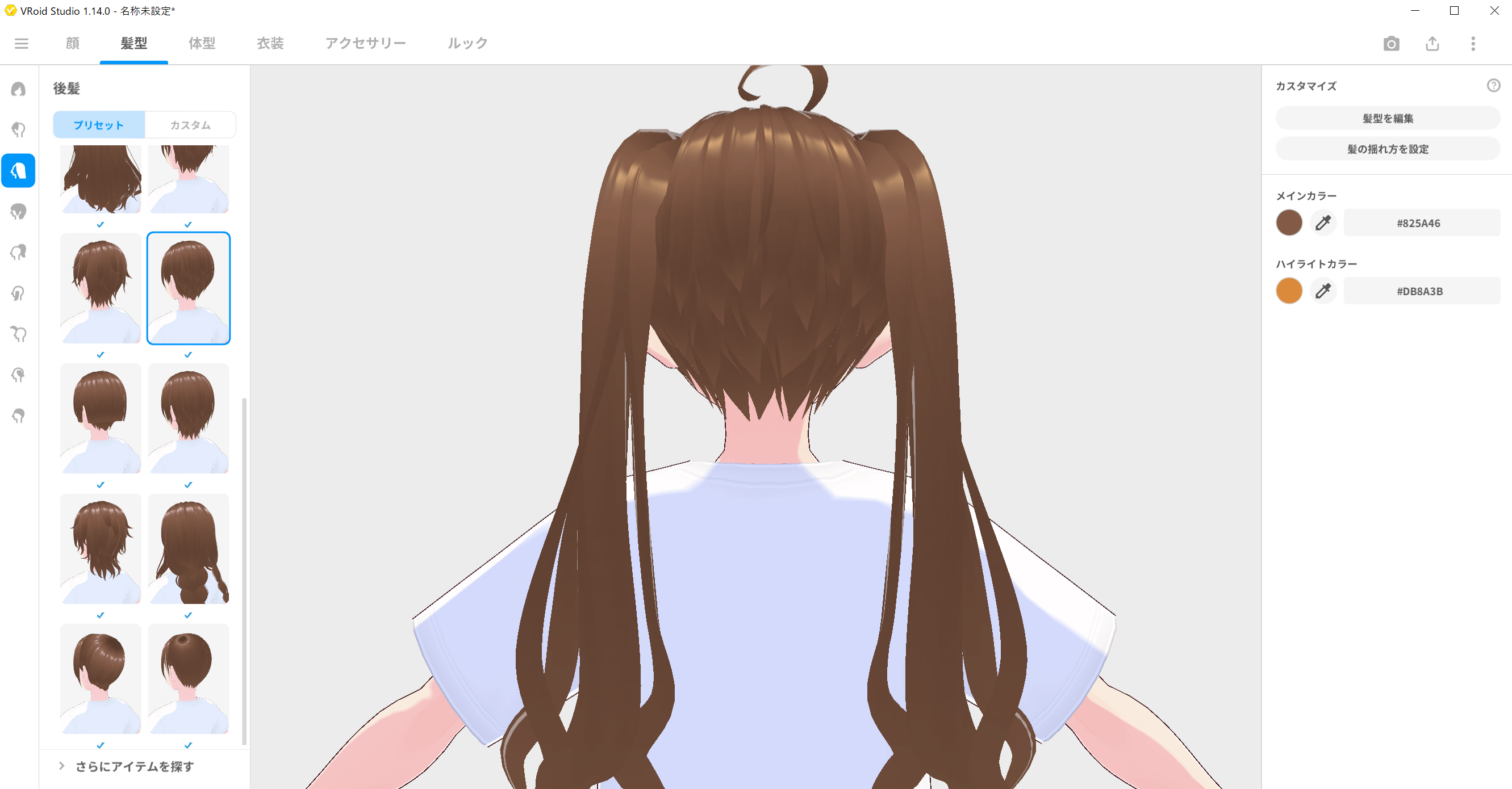 髪型も、右上の髪型を、編集から細かく変更が出来ます。