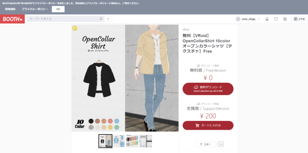 VRoidStudio用テクスチャの配布・販売をしております。無料【VRoid】Cyber-和装_ONI 9色【テクスチャ】Free(¥ 0), 無料【VRoid】和装隊服【テクスチャ】Free(¥ 0), 【VRoid】Denim_SwimWear 2pattern4Color デニム水着【テクスチャ】(¥ 300)...
