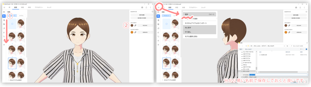 今回は、ショートヘアーで大きく変更が必要無かったので、これで保存しています。