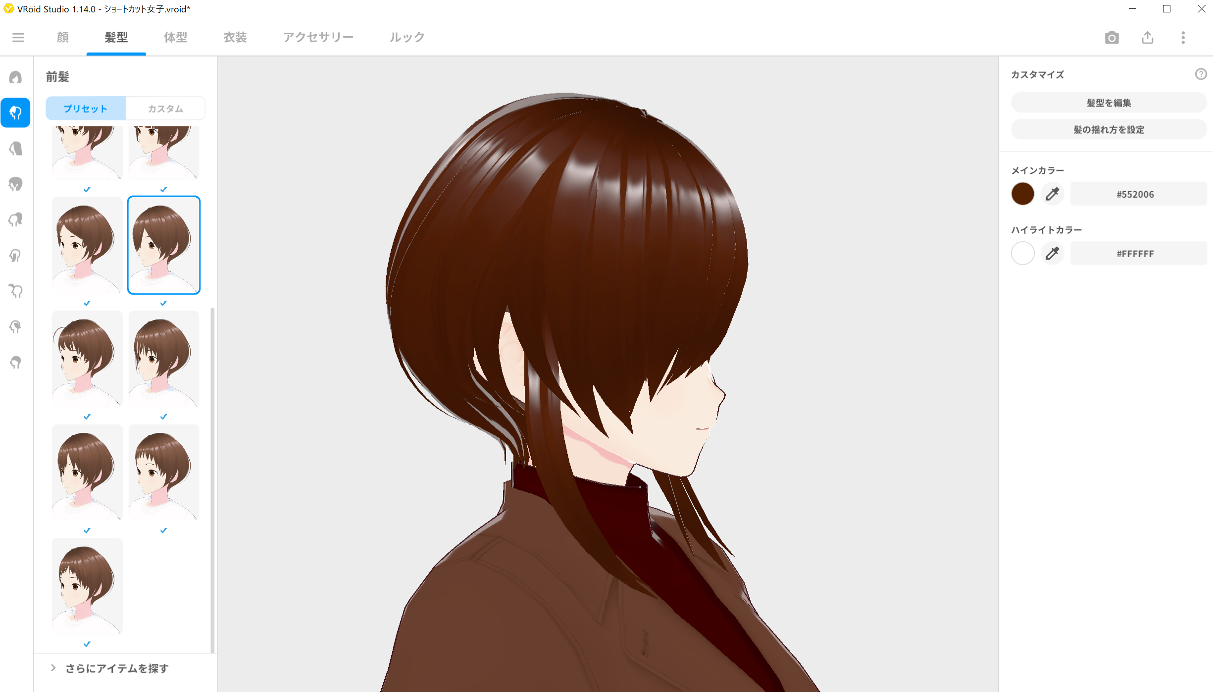 左の選択が、一番上の髪セットですと、編集が出来ません。