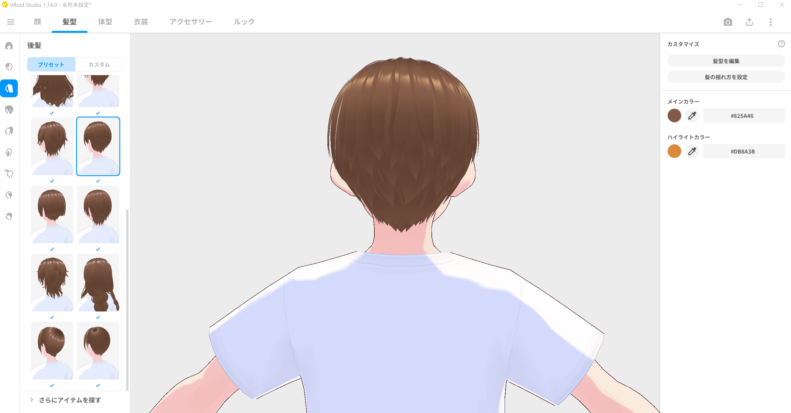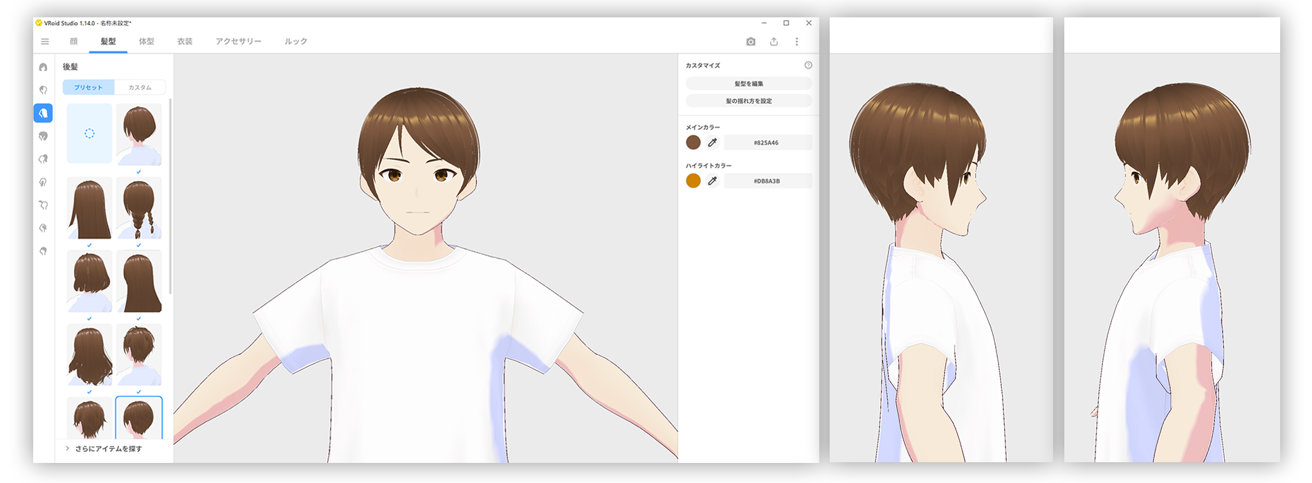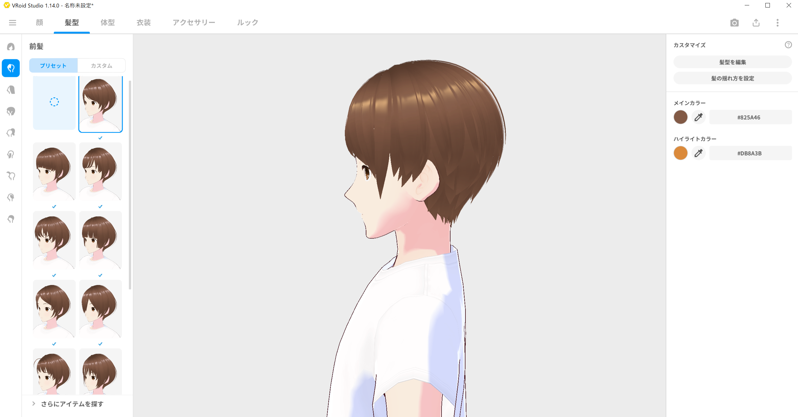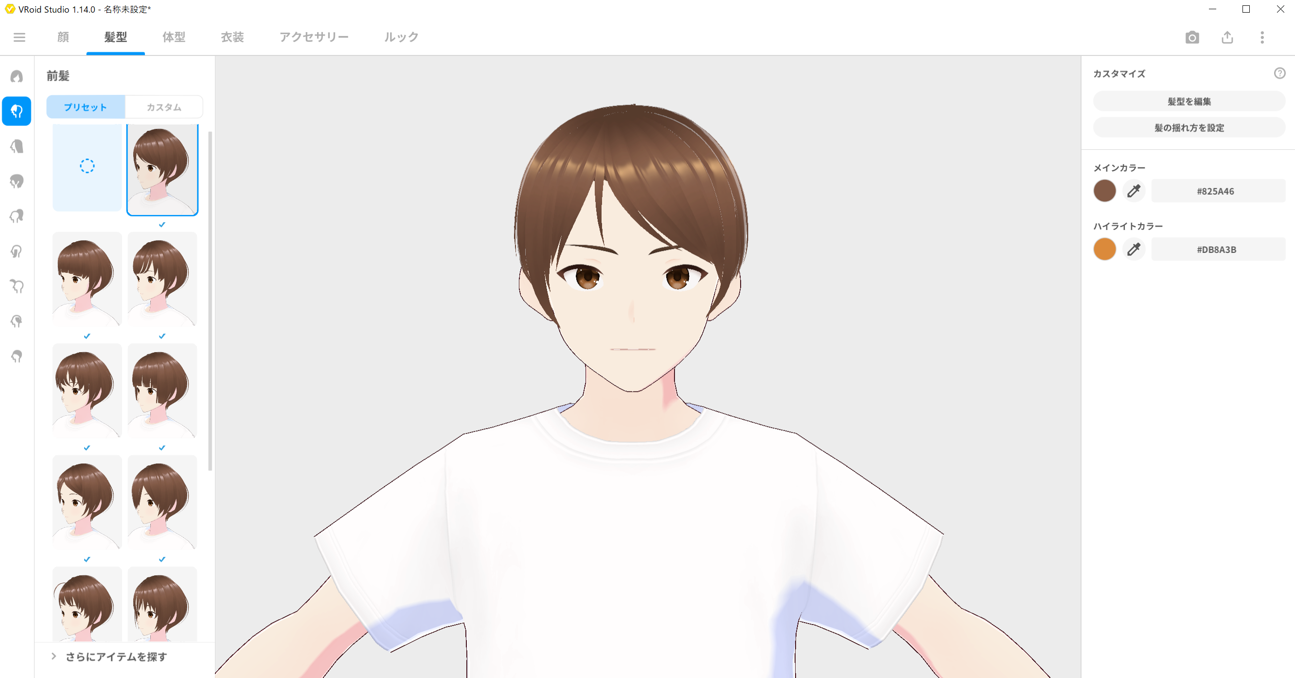 スッキリとした髪型で、vr1.14.0の中で、大まかな変更(髪型の編集をしない)の中でやって見ます。
