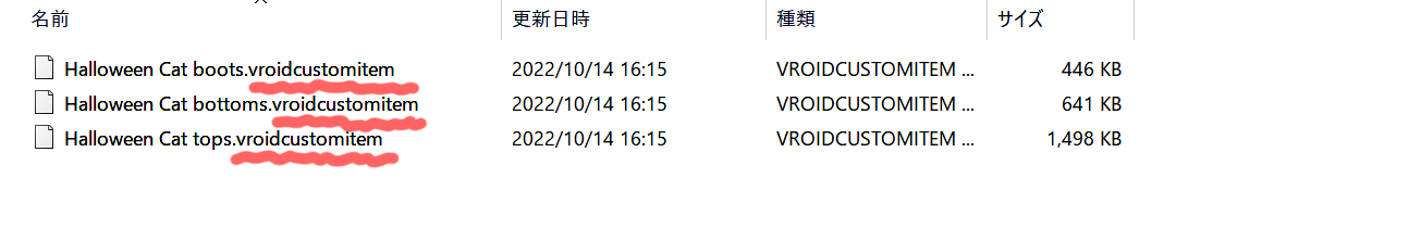 1⃣vroidcustomitemファイルの場合。(ファイルの拡張子が.vroidcustomitemになっている)