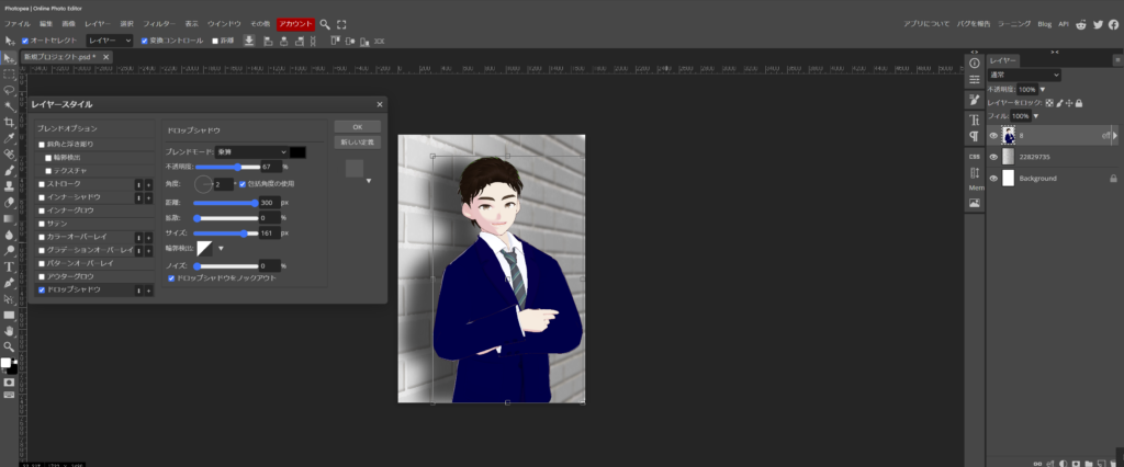 上手く、切り取れたら、アバターの画像の大きさを合わせて、ブレンドオプションのドロップシャドウを付けて、立体感を出しました。