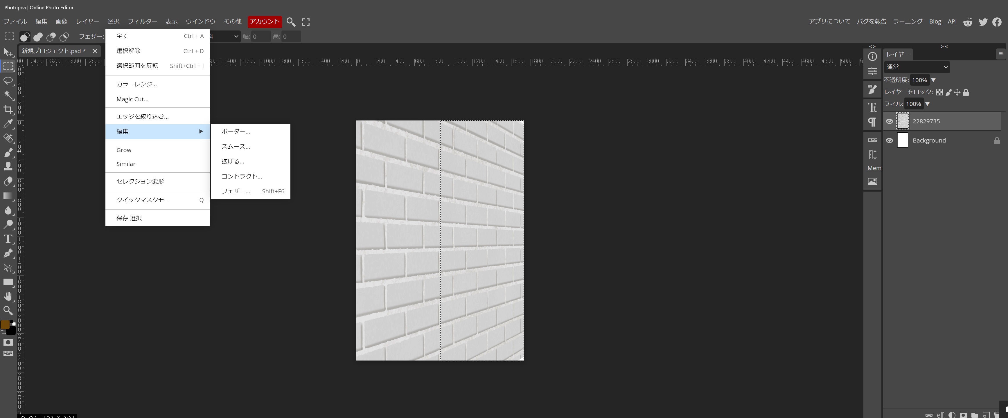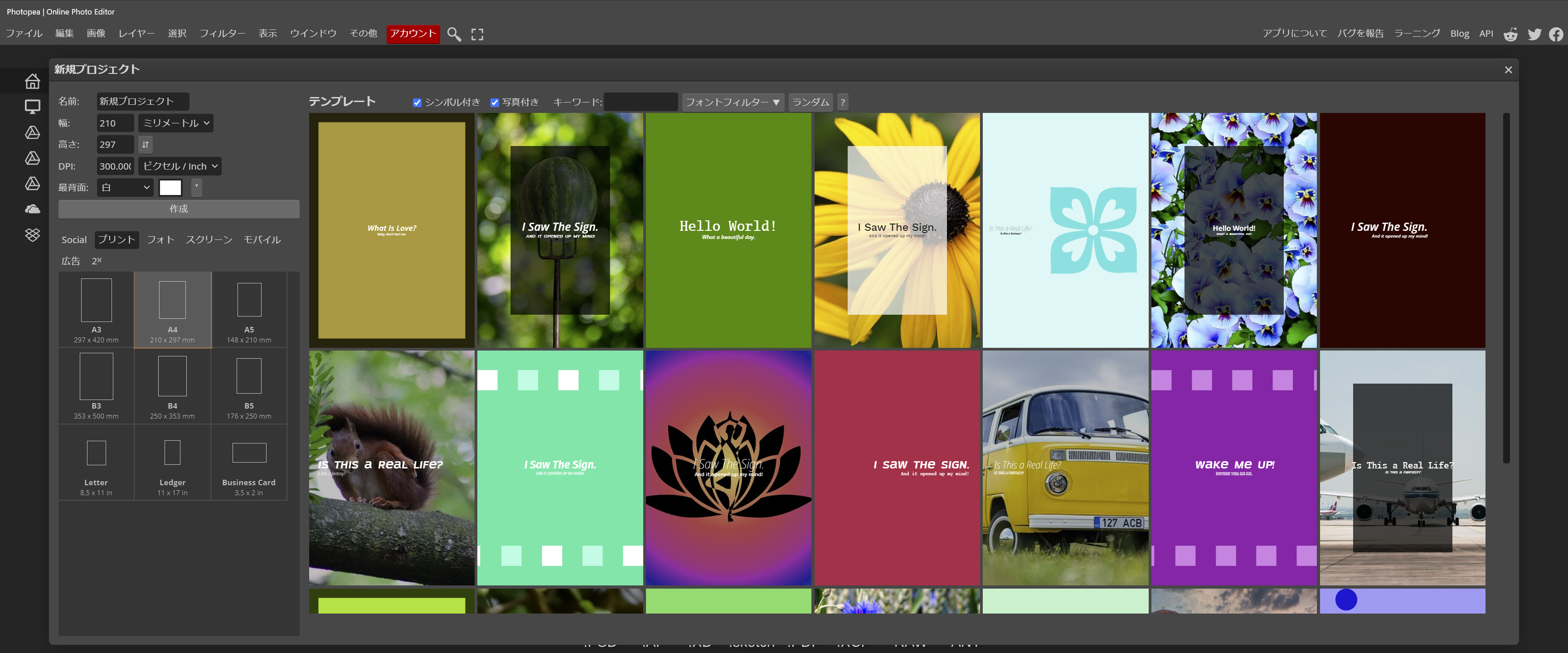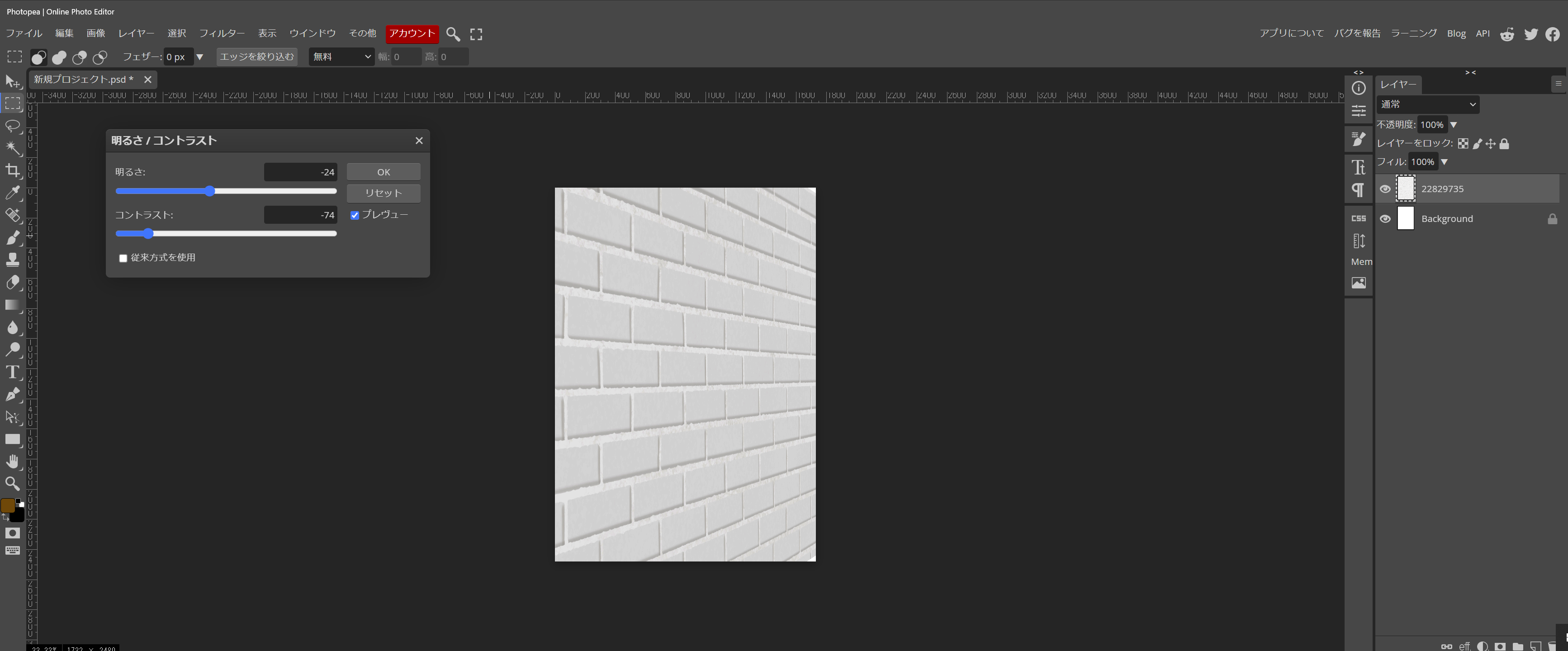 最初に、新規作成ページから、A4の縦サイズを選択しました。何故かと申しますと、レンガ背景のサイズが丁度A4だったからです。縦表示を横表示にして、ダウンロードした背景画像を、乗せます。