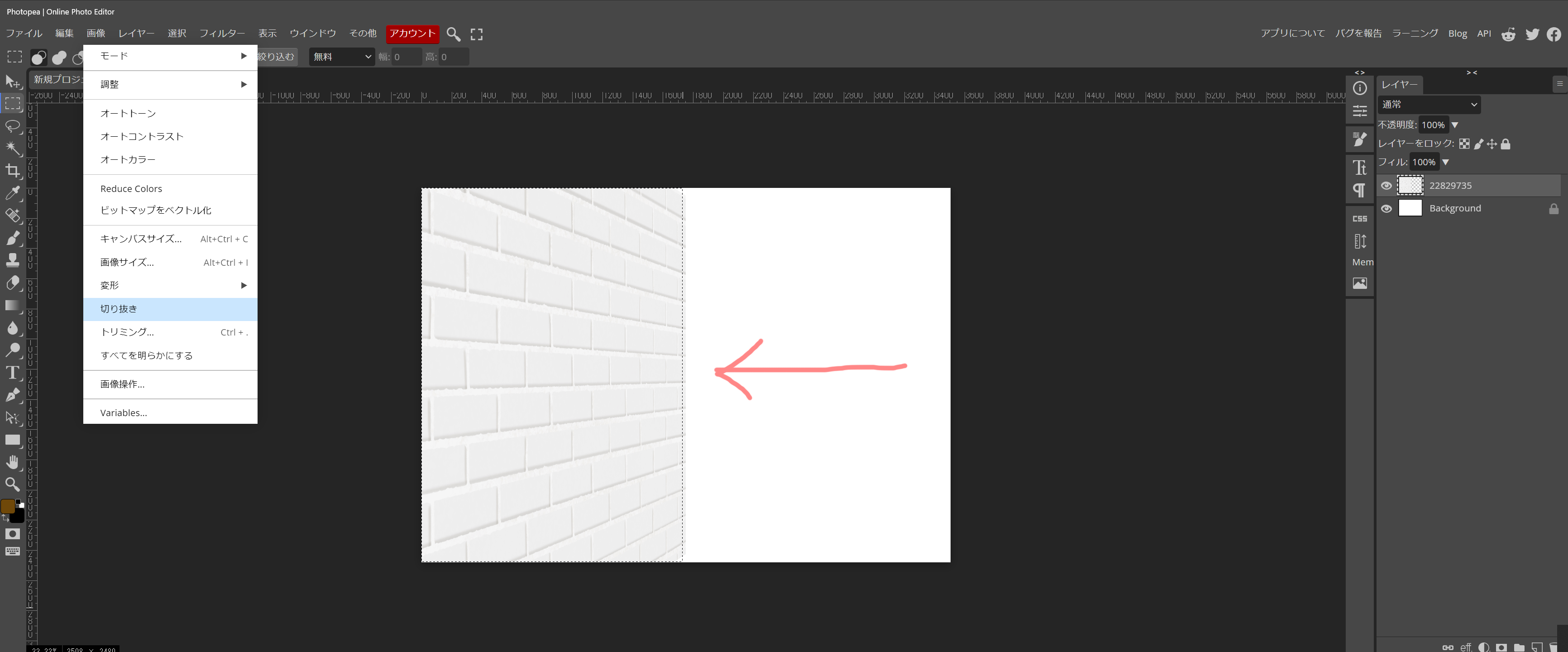 最後に、右の白い余白は、使いませんので、使用する部分を残して、切り抜いてしまします。