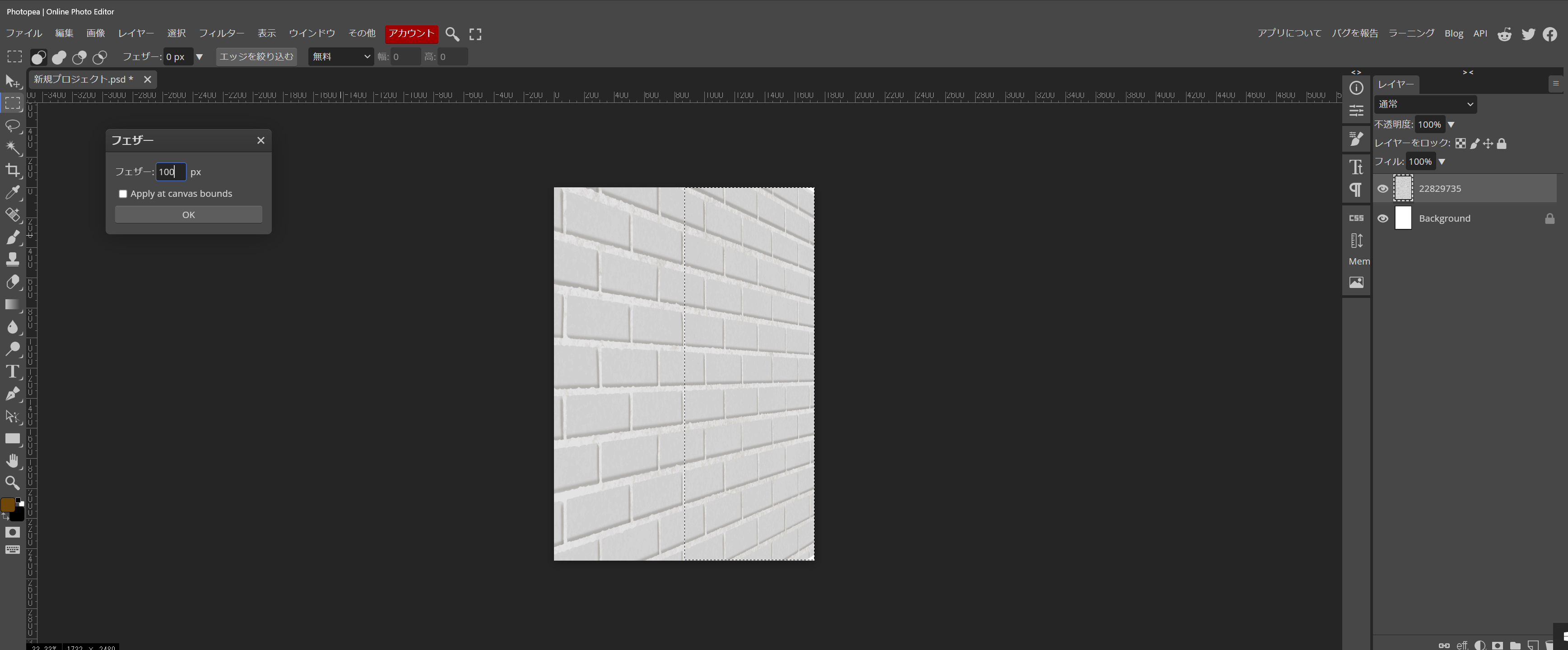 - フェザーの範囲を100pxにしてみました。