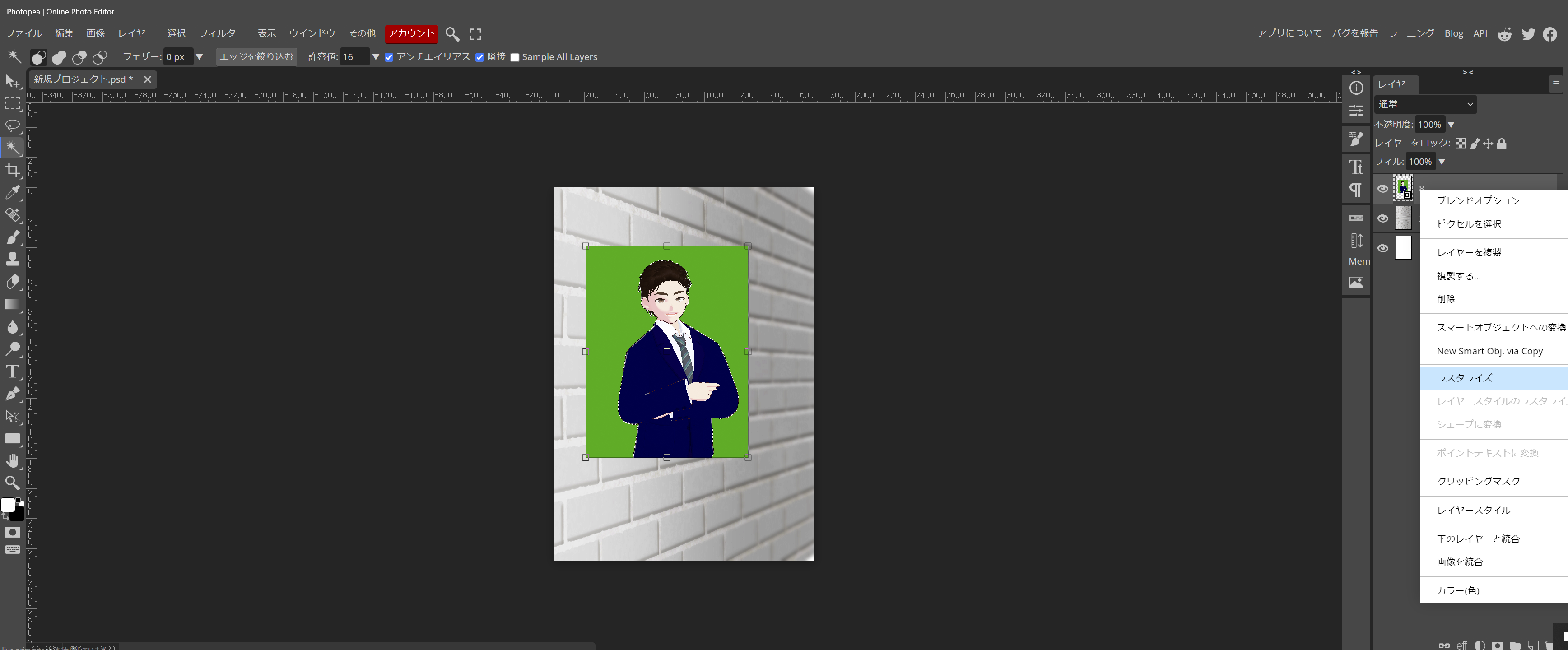スマートオブジェクト形式になっていますので、作業が出来る様に、ラスタライズしておきます。
