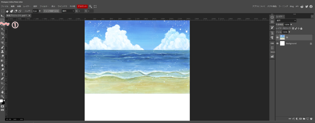 次に、矩形ツールを選択して砂浜の部分を囲います。