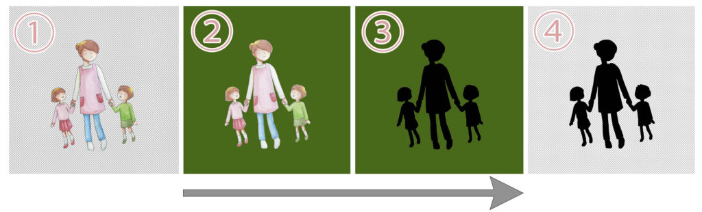 影用のレイヤー作りの大まかな手順は、こんな感じです。