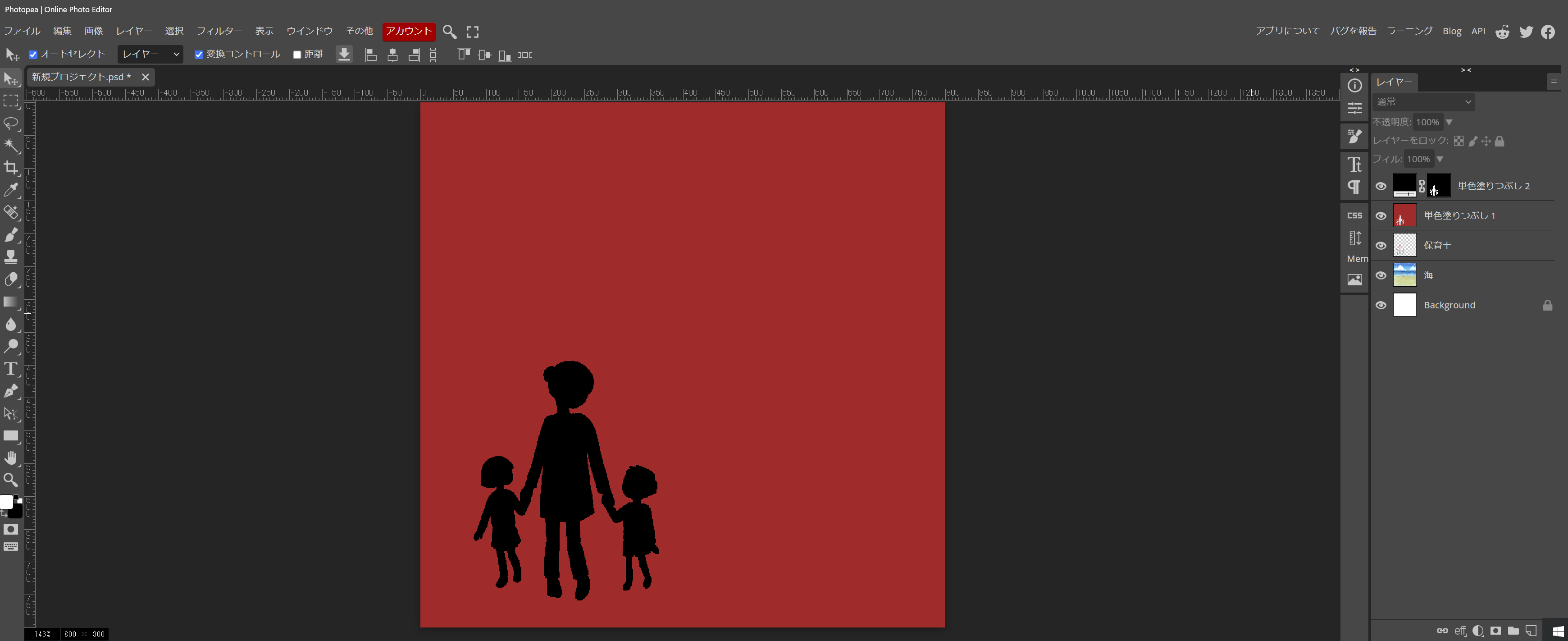 - 反転した範囲で、黒いレイヤーを作ったら、最初のレイヤーは消してしまいます。