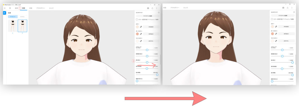 これだけの変化でも、大分印象が違ったと思います。基本の衣装でも調整で大分、ご自身の希望に近づける事が出来ると思いますので、チャレンジしてみて下さい。