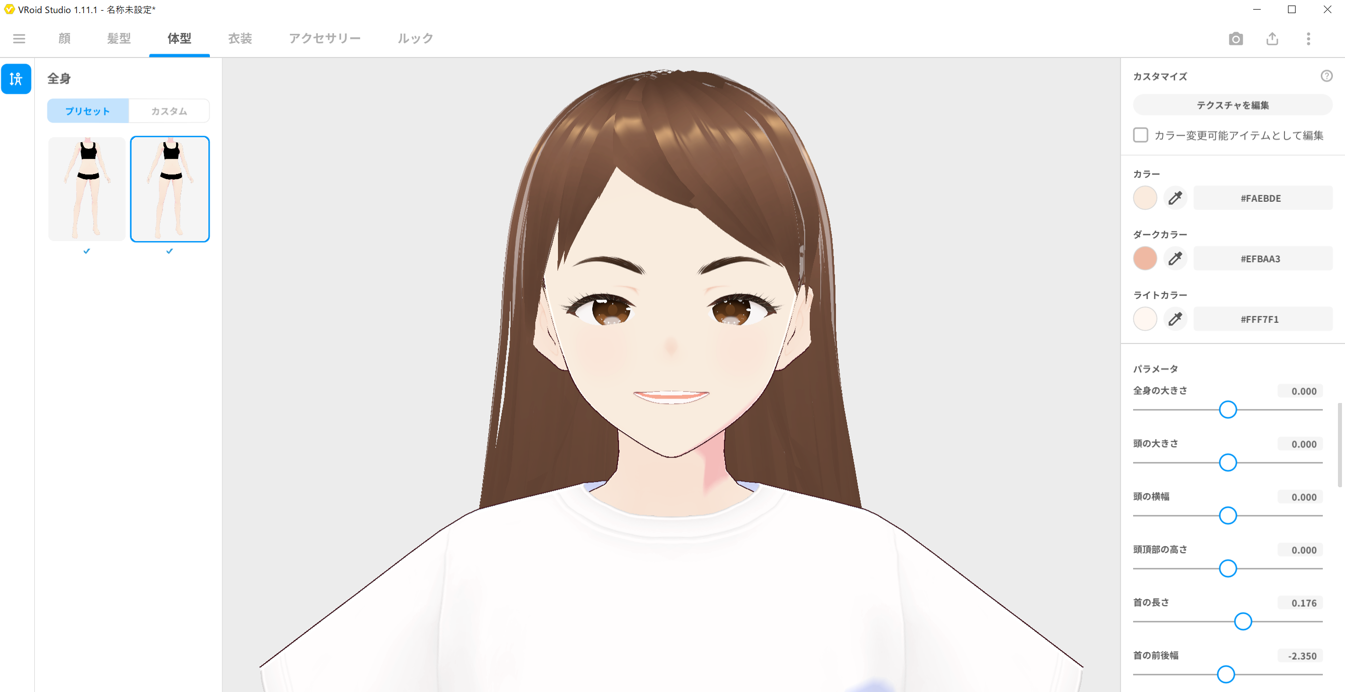 首の長さは最初の設定が、かなり短めになっていると思います。