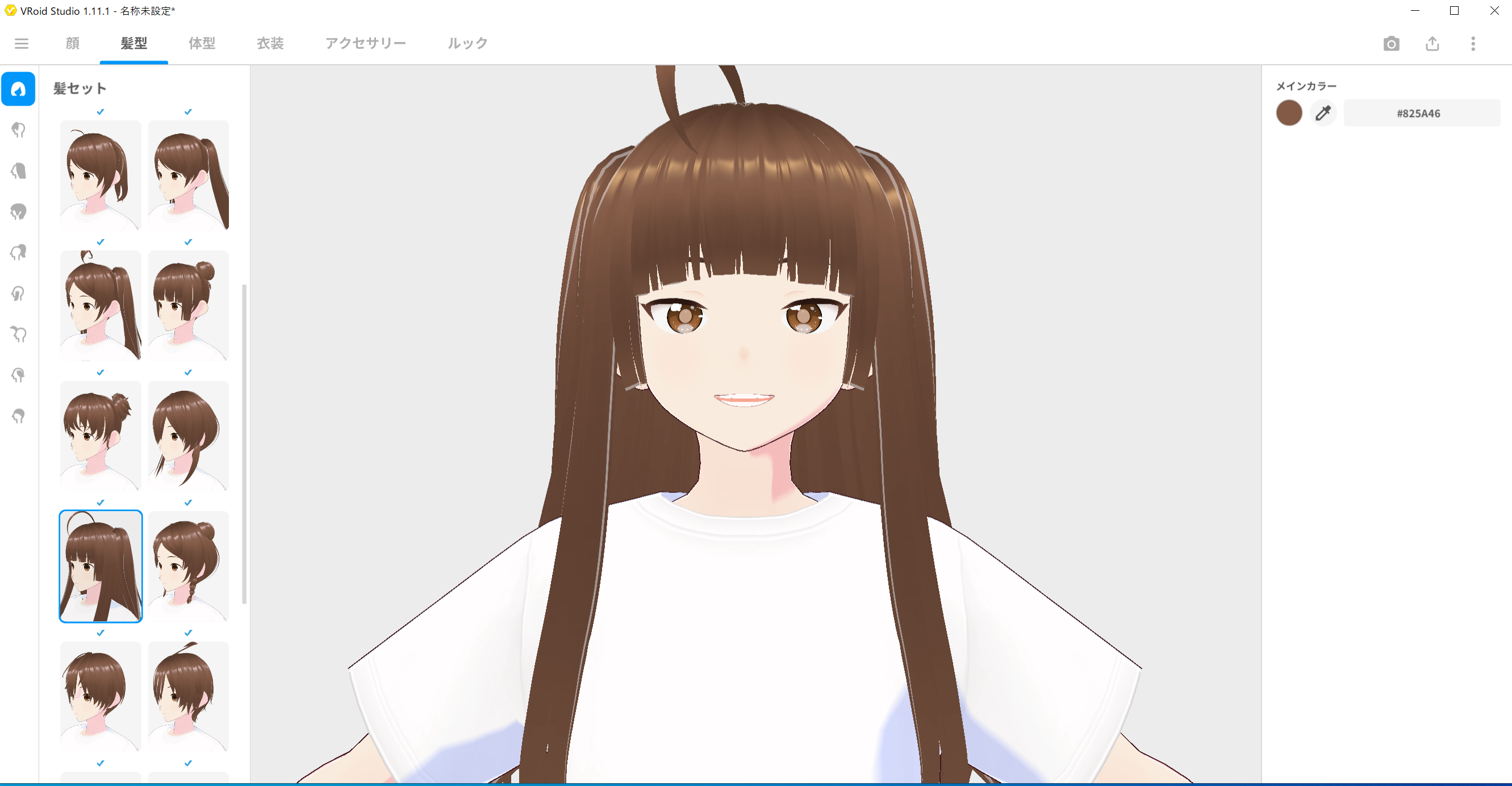 左側の全体ヘアーから、お好みの物を選択します。一つ下の前髪から、お好みの形にして行きます。