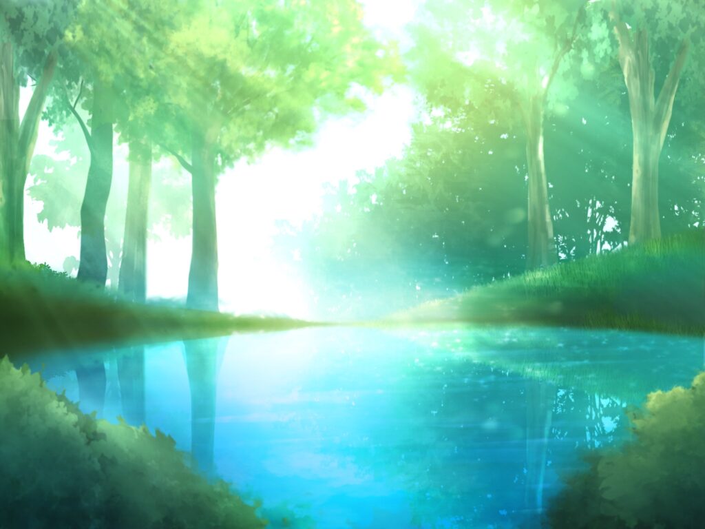 | yosei さん | 森の中の湖 背景 イラスト | 手書き風景 | イラストAC |